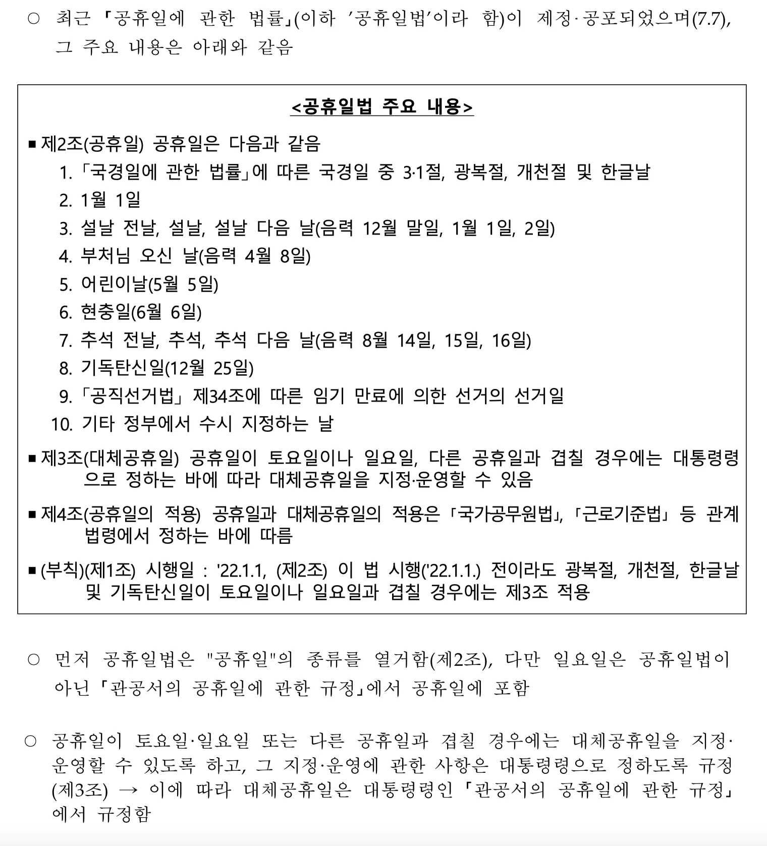 2. 5인이상 사업장 22년 부터 유급휴일 확대 - 공휴일에 관한 법률 시행